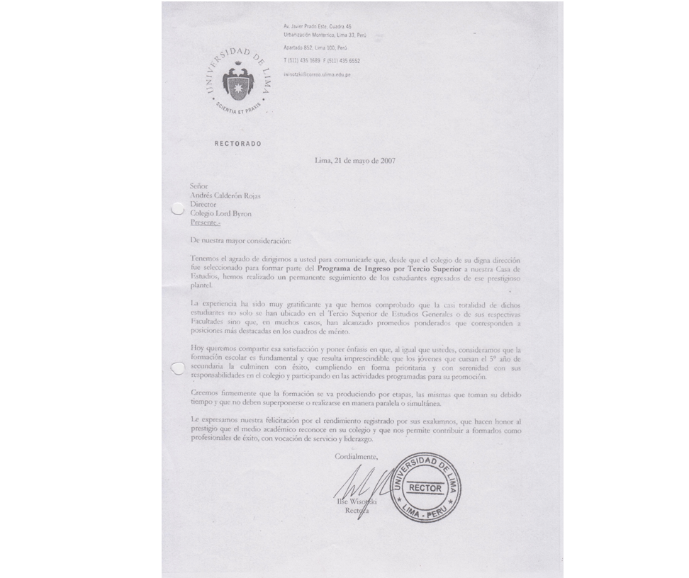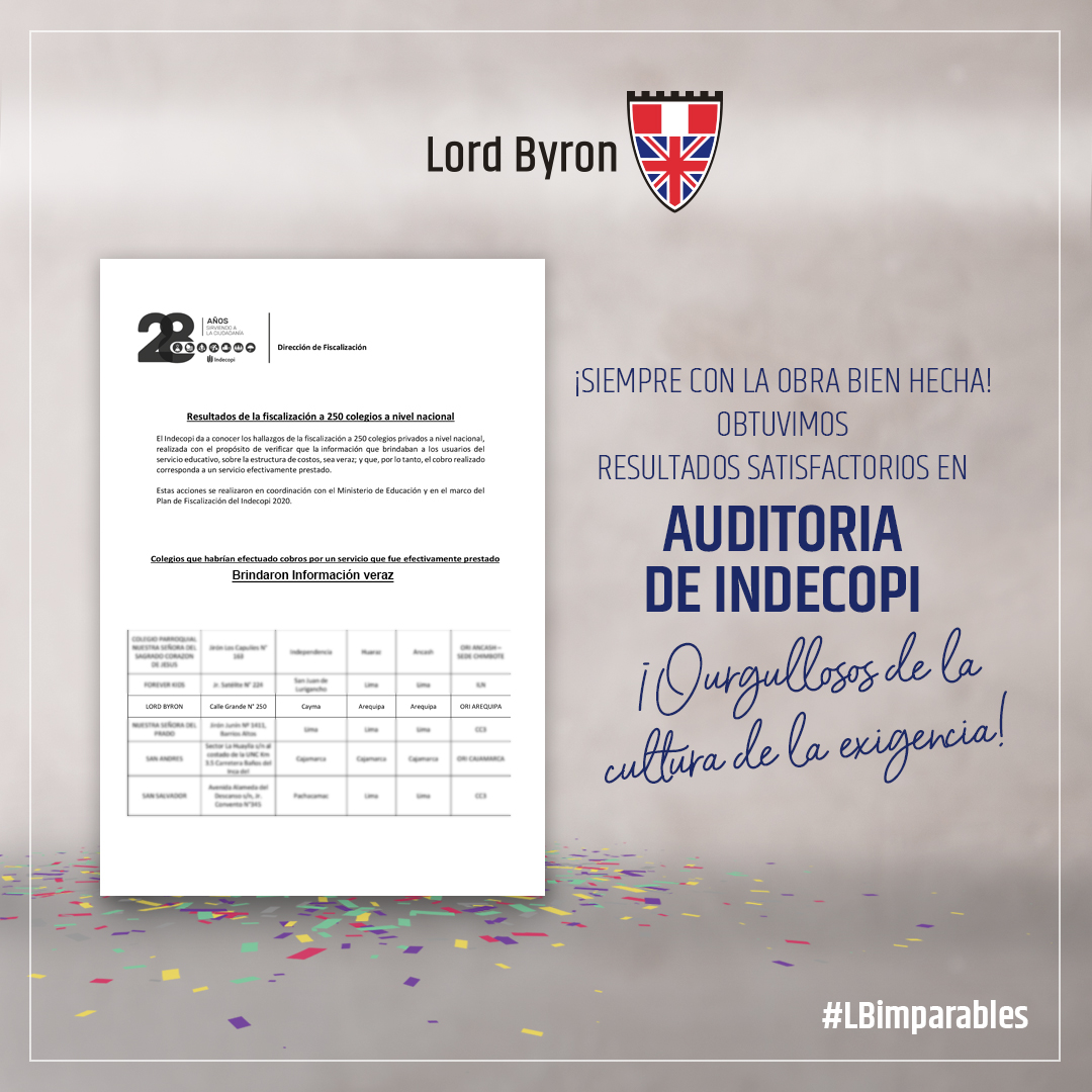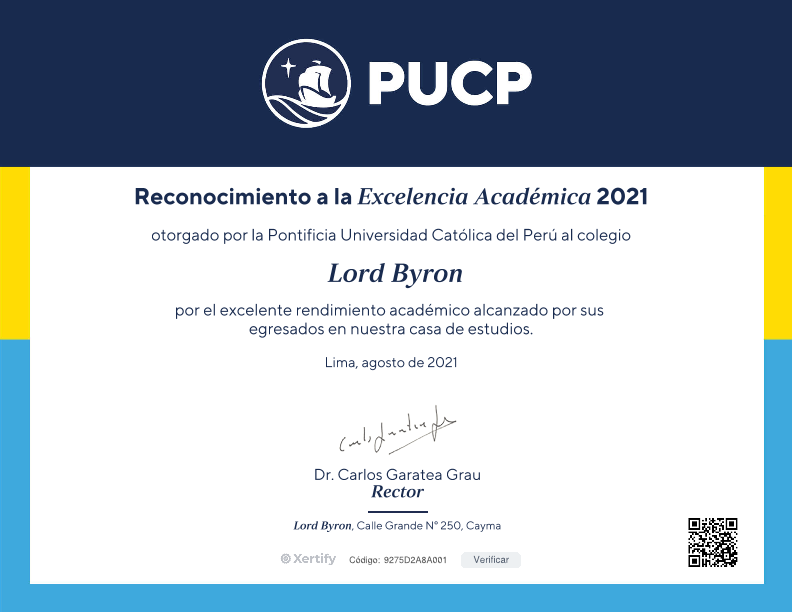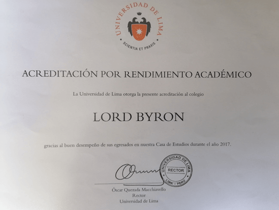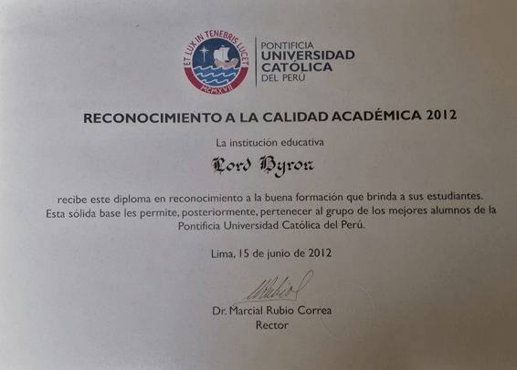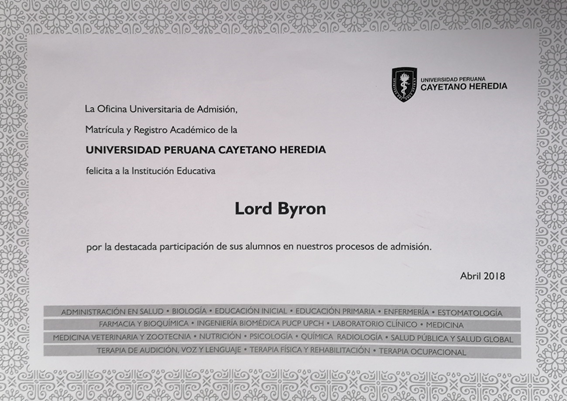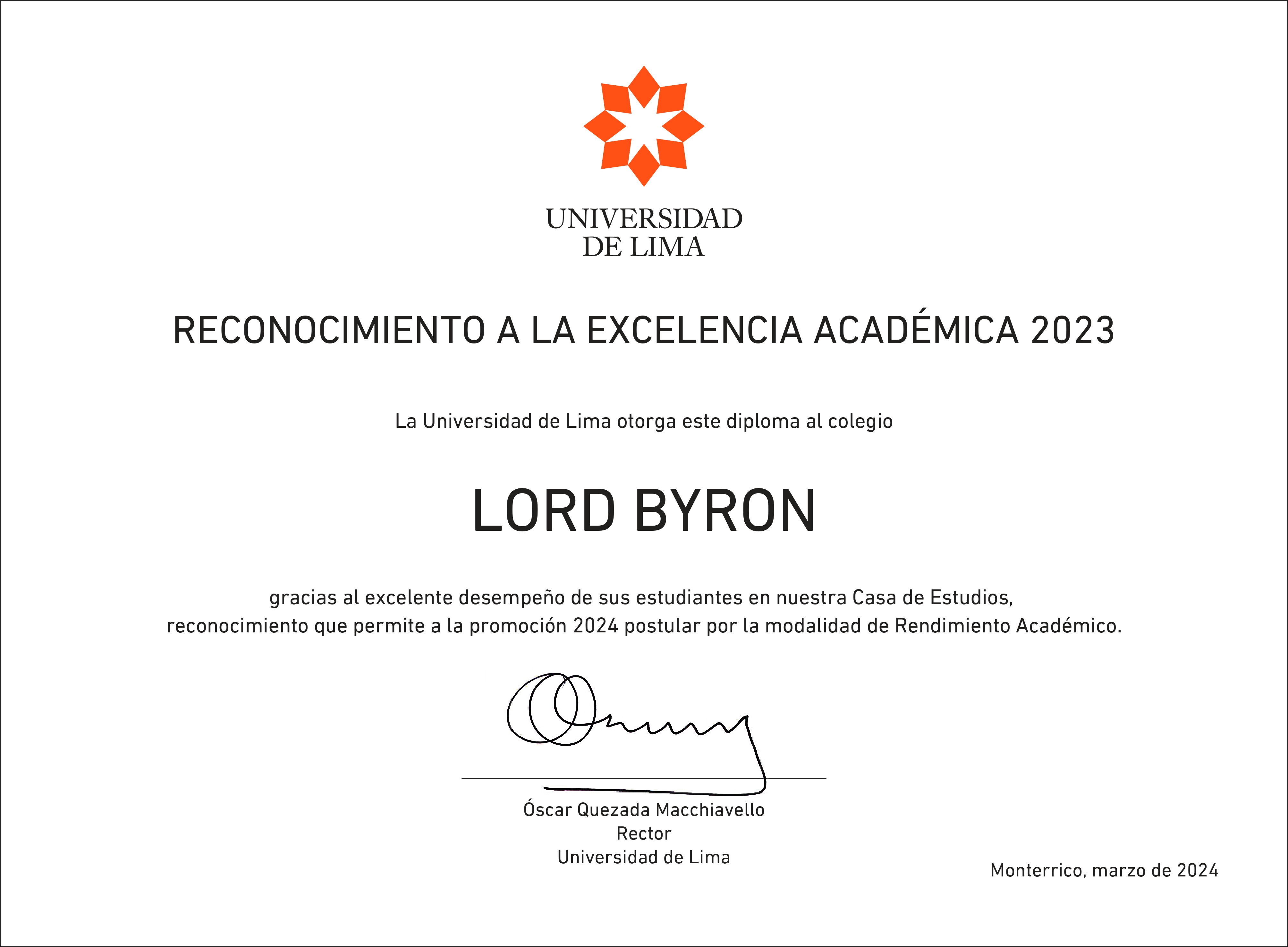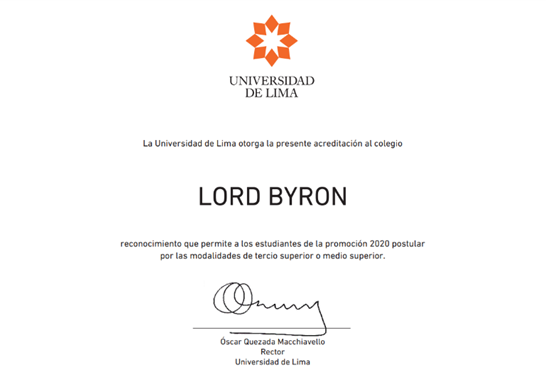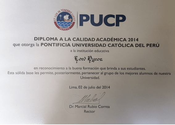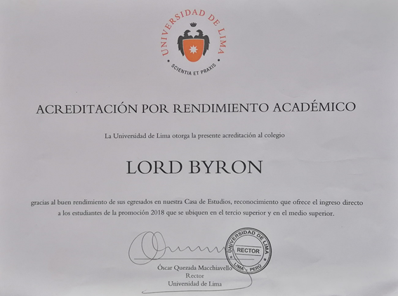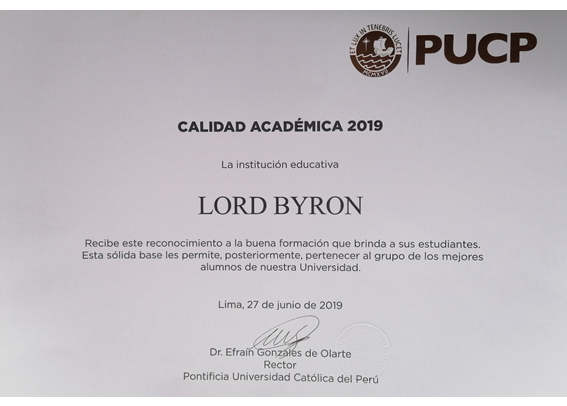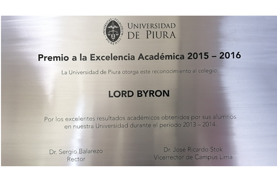 A través de los años nuestro colegio ha alcanzado grandes logros tanto a nivel nacional como internacional. Estos reconocimientos dejan claro que el Sistema Lord Byron y la cultura de la exigencia realmente ayudan a nuestros alumnos.