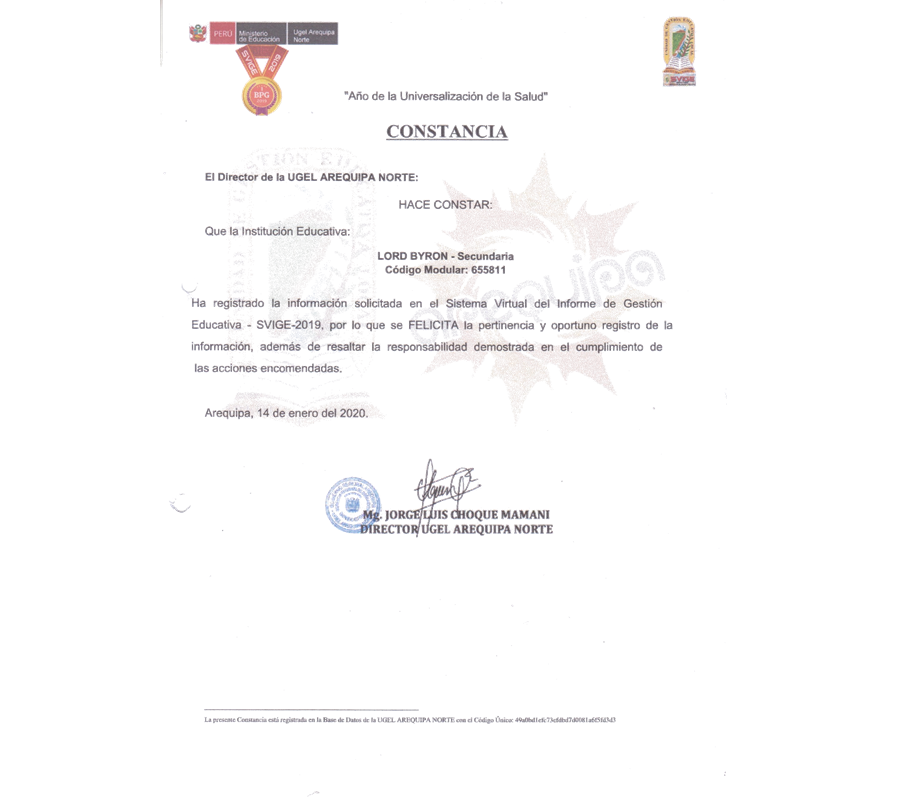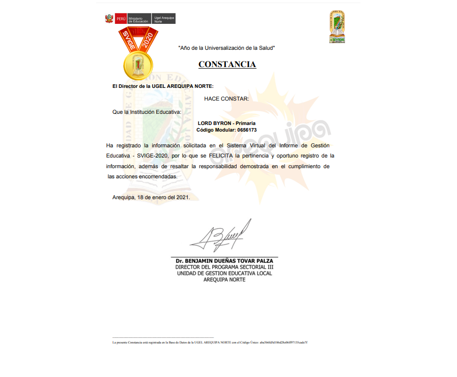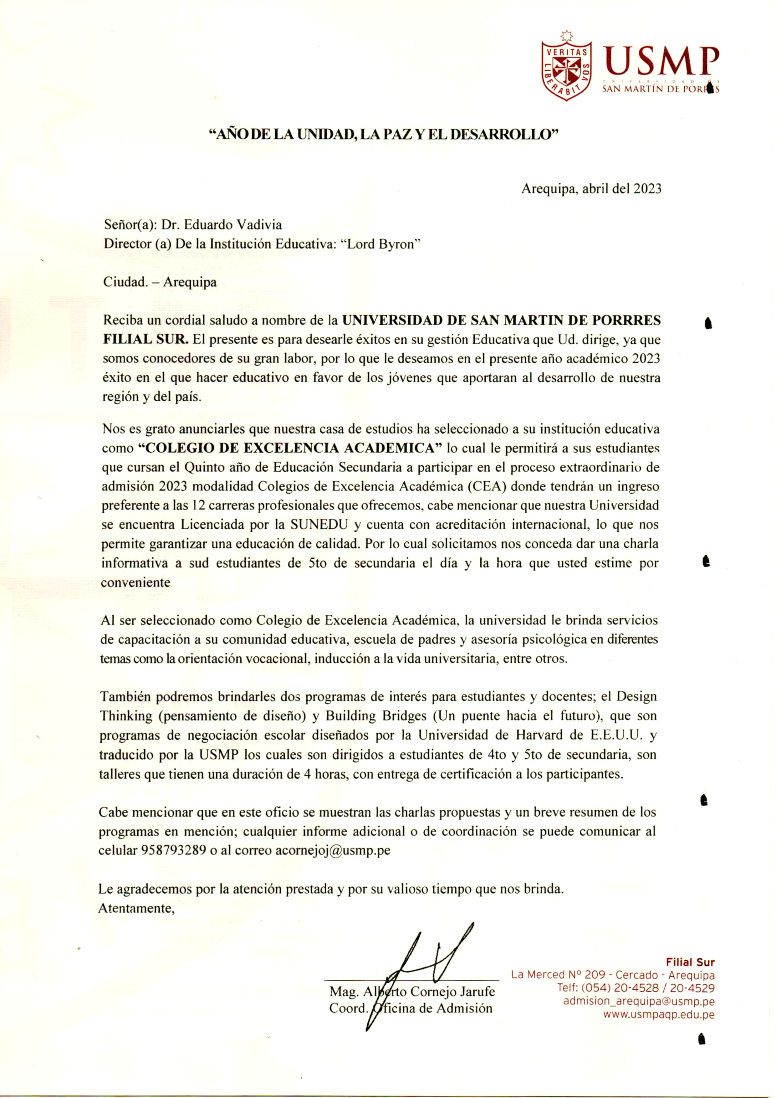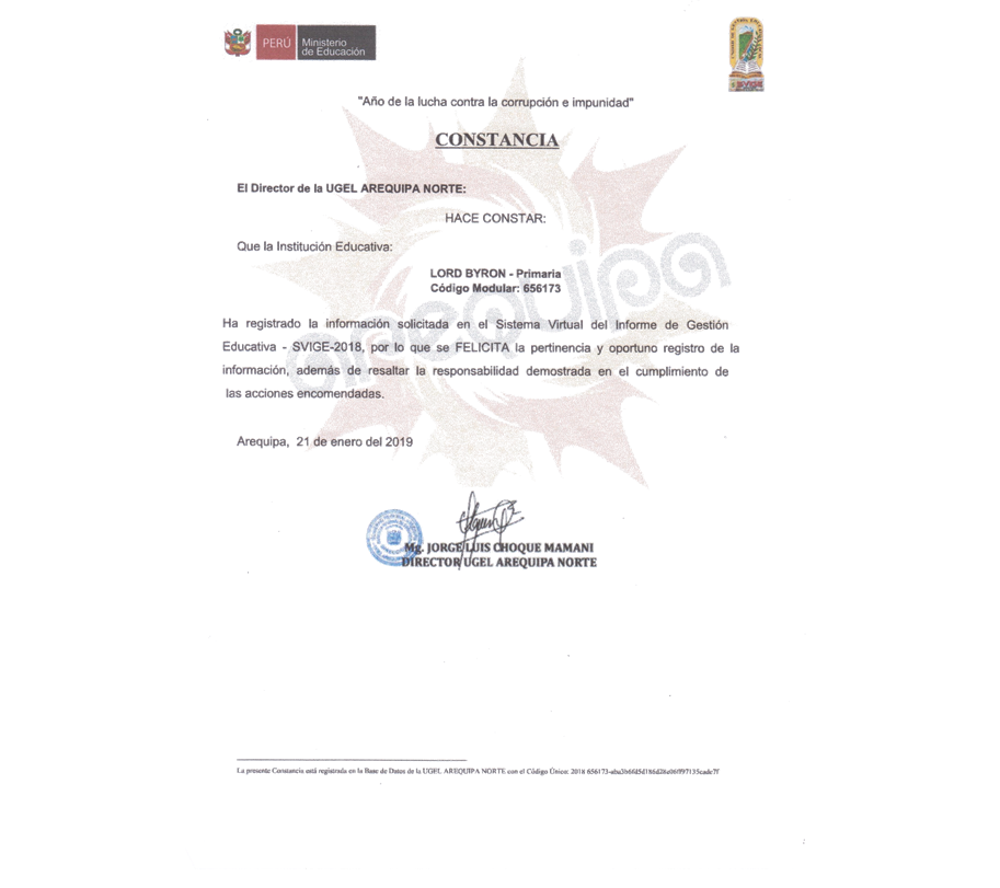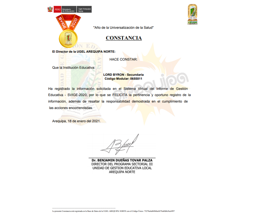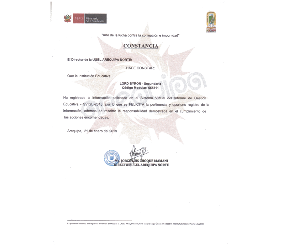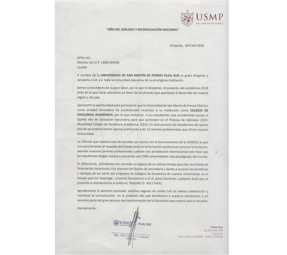A través de los años nuestro colegio ha alcanzado grandes logros tanto a nivel nacional como internacional. Estos reconocimientos dejan claro que el Sistema Lord Byron y la cultura de la exigencia realmente ayudan a nuestros alumnos.